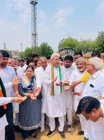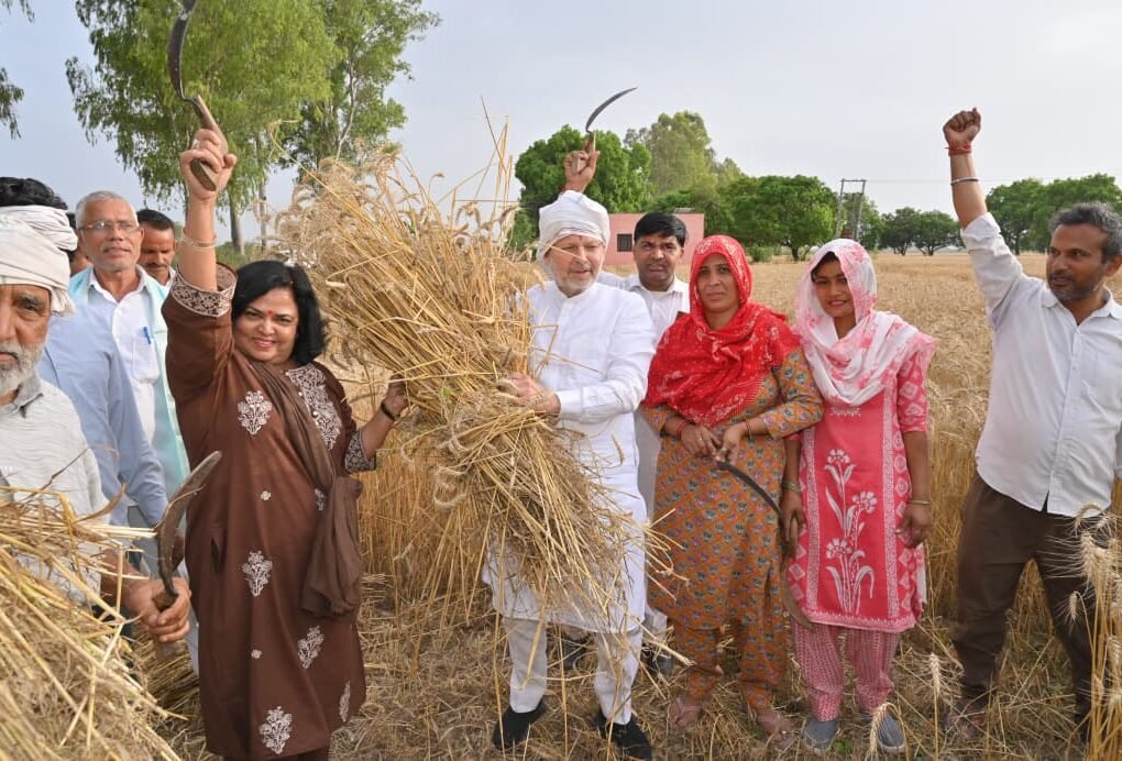 मंडासा मार खेत में पहुंचे डॉ अरविंद शर्मा, पत्नी संग करी लामणी
