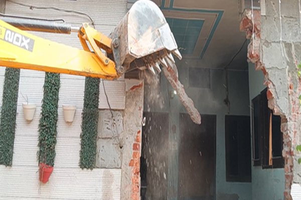मोगा पुलिस ने तीन ड्रग तस्करों के अवैध कब्जों पर चलाया बुलडोजर, पंचायत की जमीन मुक्त कराई