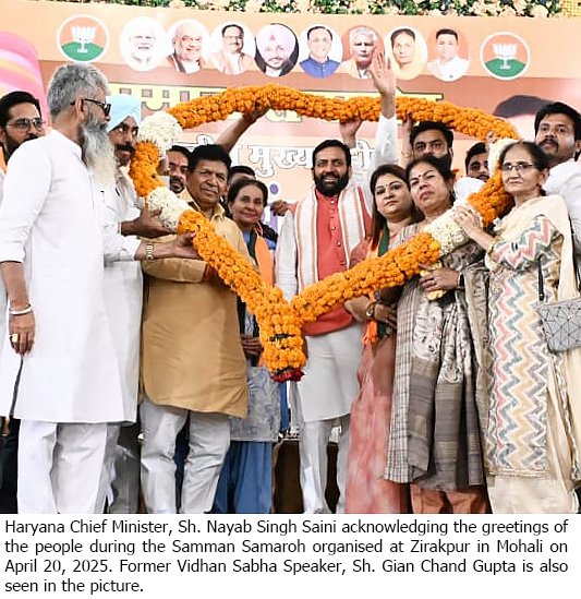पंजाब की जनता प्रधानमंत्री नरेंद्र मोदी के नेतृत्व में देख रही प्रगति की आशा – मुख्यमंत्री नायब सिंह सैनी