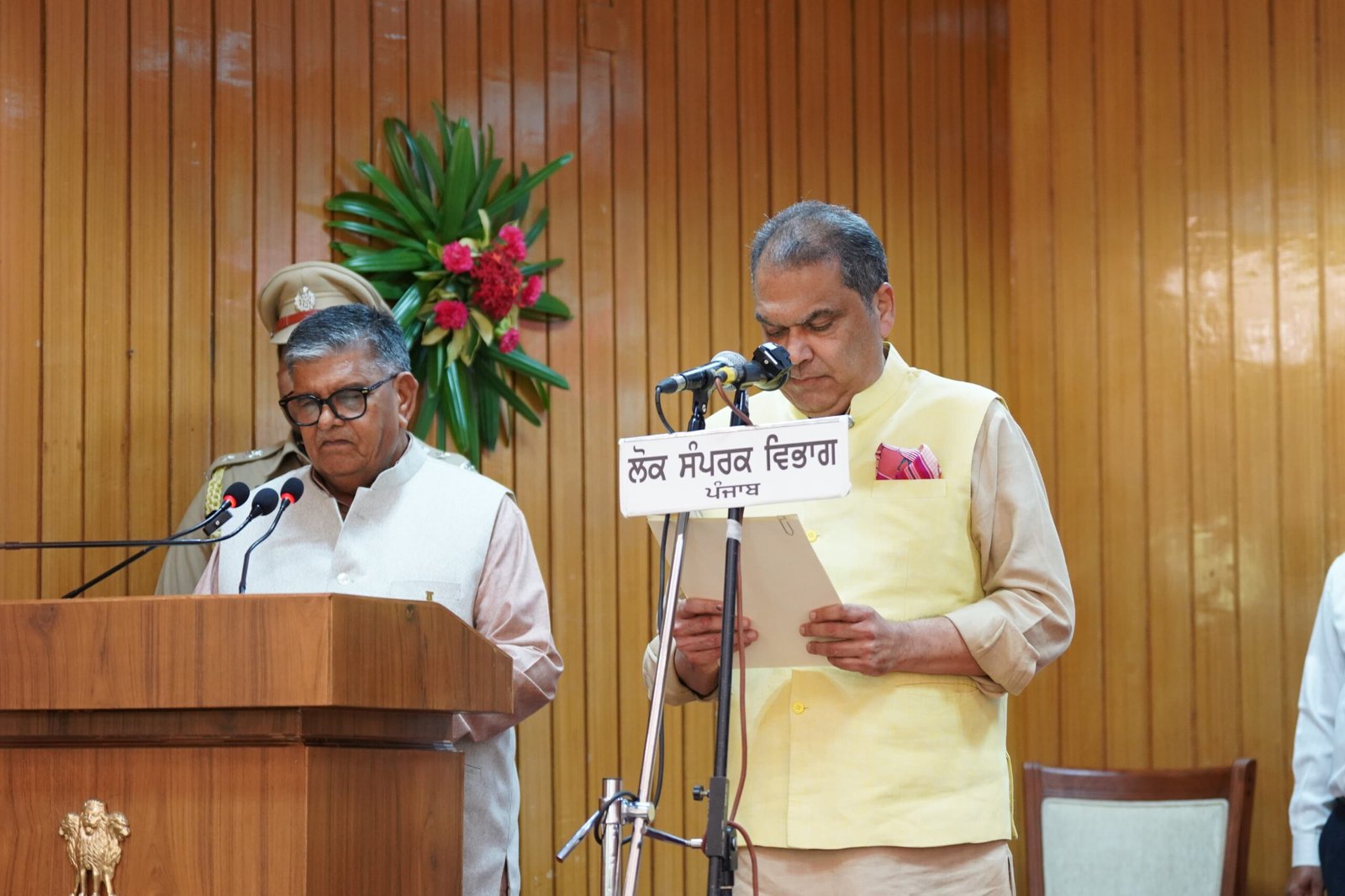 पंजाब के राज्यपाल एवं यू.टी. चंडीगढ़ के प्रशासक गुलाब चंद कटारिया ने आज मुख्यमंत्री भगवंत सिंह मान की उपस्थिति में पंजाब राज भवन में एक सादे लेकिन प्रभावशाली समारोह के दौरान संजीव अरोड़ा को कैबिनेट मंत्री के रूप में पद और गोपनीयता की शपथ दिलाई।
