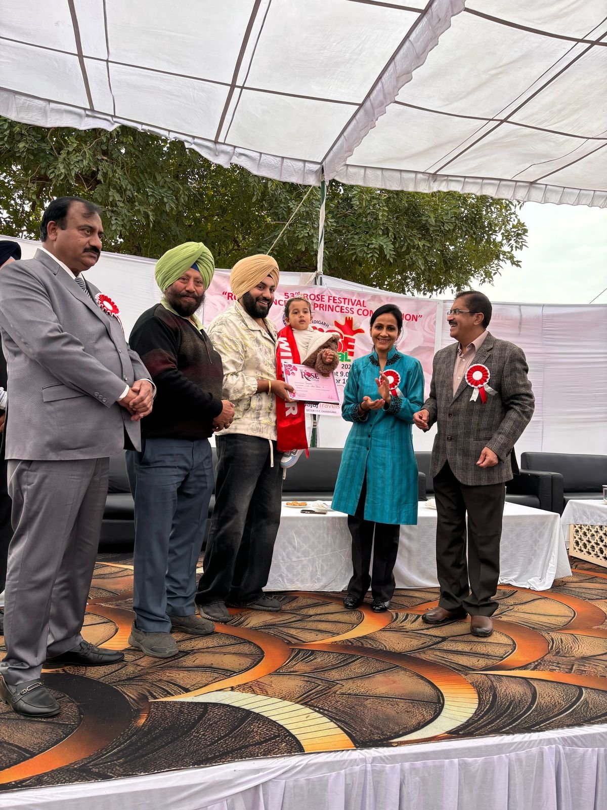 चंडीगढ़ (हरमिंदर नागपाल) हर वर्ष की तरह इस बार भी चंडीगढ़ नगर निगम द्वारा 53वें रोज फैसटीवल का किया आयोजन पंजाब के राज्यपाल व चंडीगढ़ प्रशासक ने किया उदघाटन विभिन्न कार्यक्रम आयोजित किए गए बच्चों के लिए आयोजित रोज प्रिंस व रोज प्रिंसैस मुकाबलों में बच्चों को पहिनाए गए ताज, आईएएस प्रेरणा पूरी ने डेढ़ वर्ष से दो वर्ष कैटागिरी में विजेता प्रभएक नागपाल को पहिनाया ताज इस अवसर पर प्रभएक के पापा जोबन प्रीत सिंह नागपाल, दादा हरमिंदर सिंह नागपाल,व कमिश्नर संजय आरोड़ा तथा राजिंदर कैंथ एकसीयन राजिंदर कैंथ उपस्थित थे