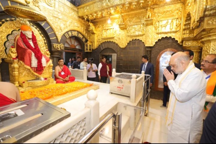 मुंबई :महाराष्ट्र के पवित्र नगर शिर्डी में रविवार 5 अक्टूबर को साईं बाबा के दरबार में श्रद्धा और आस्था का अद्भुत संगम देखने को मिला जब देश के गृह और सहकारिता मंत्री अमित शाह स्वयं साईं समाधि के सामने नतमस्तक हुए और बाबा से देश की शांति, समृद्धि और सबके कल्याण की प्रार्थना की। सुबह-सुबह उन्होंने शिर्डी के प्रसिद्ध साईं मंदिर में विधिवत पूजन-अर्चन किया और मंदिर के पुजारियों से आशीर्वाद लिया। मंदिर परिसर में उनके साथ मुख्यमंत्री देवेंद्र फडणवीस, उपमुख्यमंत्री एकनाथ शिंदे, अजित पवार और कई वरिष्ठ अधिकारी मौजूद थे। अमित शाह के आगमन से पहले मंदिर में सुरक्षा व्यवस्था चाक-चौबंद की गई थी और भक्तों में उन्हें देखने की उत्सुकता स्पष्ट झलक रही थी। दर्शन के बाद उन्होंने कहा कि साईं बाबा ने हमें जो संदेश दिया — “सबका मालिक एक” — वही इस देश की एकता, प्रेम और सौहार्द का मूल मंत्र है और जब तक भारत उस वचन पर टिका रहेगा तब तक यह देश हर संकट को पार कर लेगा।