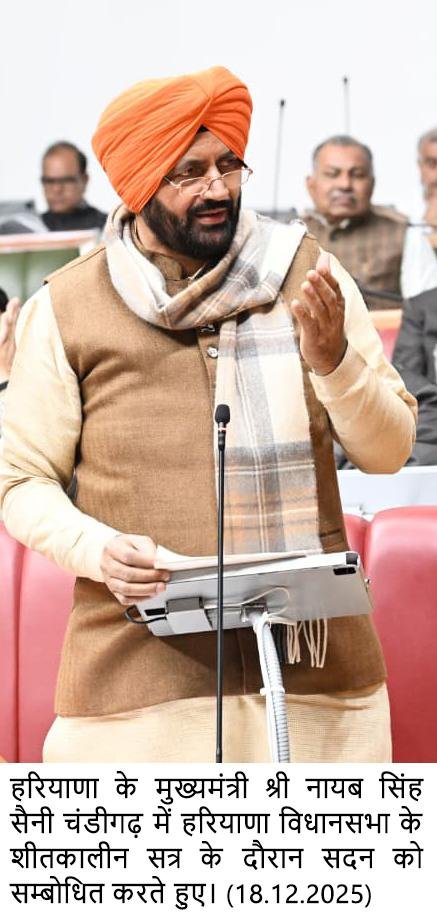 चंडीगढ़ 18 दिसंबर — हरियाणा विधानसभा के शीतकालीन सत्र के पहले दिन सदन में श्री गुरु तेग बहादुर जी के 350वें बलिदान दिवस पर प्रदेशभर में कार्यक्रमों के सफल आयोजन के लिए हरियाणा सिख गुरुद्वारा प्रबंधक कमेटी, श्री गुरु तेग बहादुर शहीदी दिवस आयोजन समिति, सभी जनप्रतिनिधियों, समाजसेवी संगठनों और नागरिक संस्थाओं का आभार व्यक्त किया गया। इस संबंध में एक प्रस्ताव को सर्वसम्मति से पारित किया गया। इसके अलावा, सदन की ओर से प्रधानमंत्री श्री नरेंद्र मोदी का भी आभार व्यक्त किया गया, जिन्होंने 25 नवम्बर को ज्योतिसर, कुरुक्षेत्र में आयोजित विशाल समागम में गुरुजी को नमन किया और अंतर्राष्ट्रीय गीता महोत्सव में भी शामिल हुए।