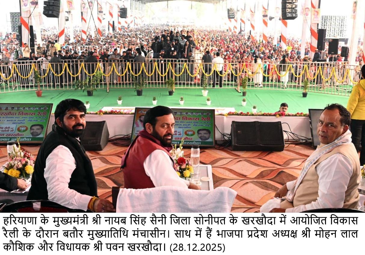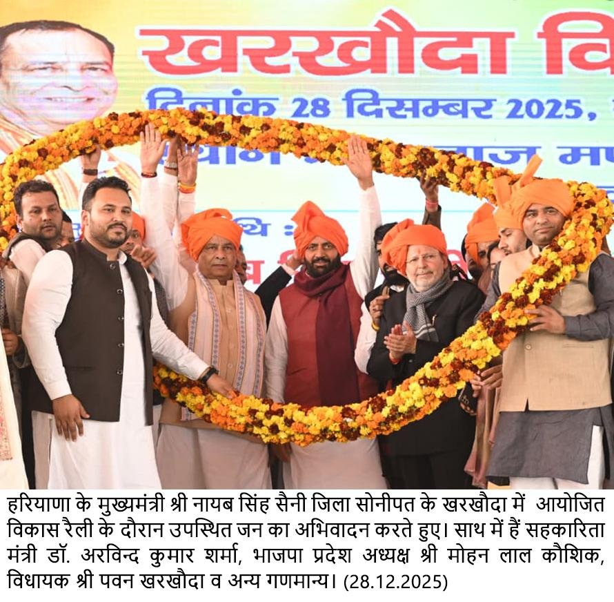 मुख्यमंत्री नायब सिंह सैनी ने खरखौदा में घोषणाओं की लगाई झड़ी, विकास में कोई कोर-कसर नहीं छोड़ी जाएगी