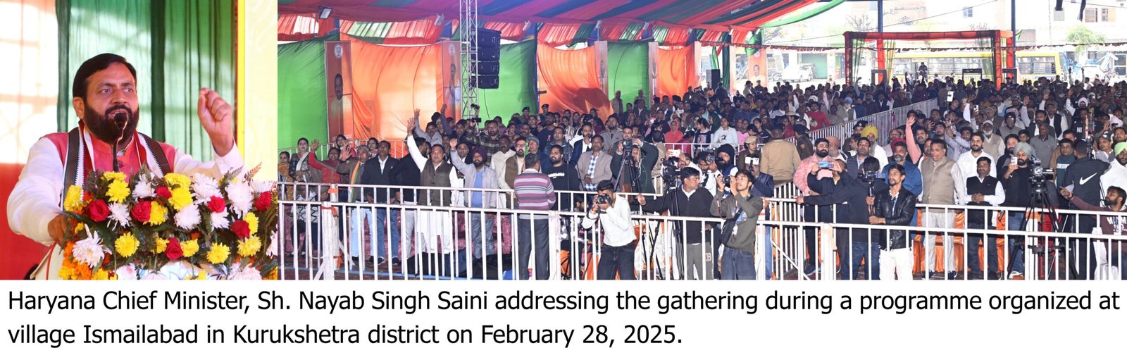 श्री नायब सिंह सैनी ने कहा कि प्रधानमंत्री श्री नरेंद्र मोदी के नेतृत्व में प्रदेश सरकार ने विकास को नई गति दी है। उन्होंने प्रधानमंत्री के नेतृत्व में प्रदेश सरकार द्वारा चलाई जा रही कल्याणकारी योजनाओं का उल्लेख करते हुए कहा कि सरकार ने सभी वर्गों के विकास के लिए प्रभावी कदम उठाए हैं।