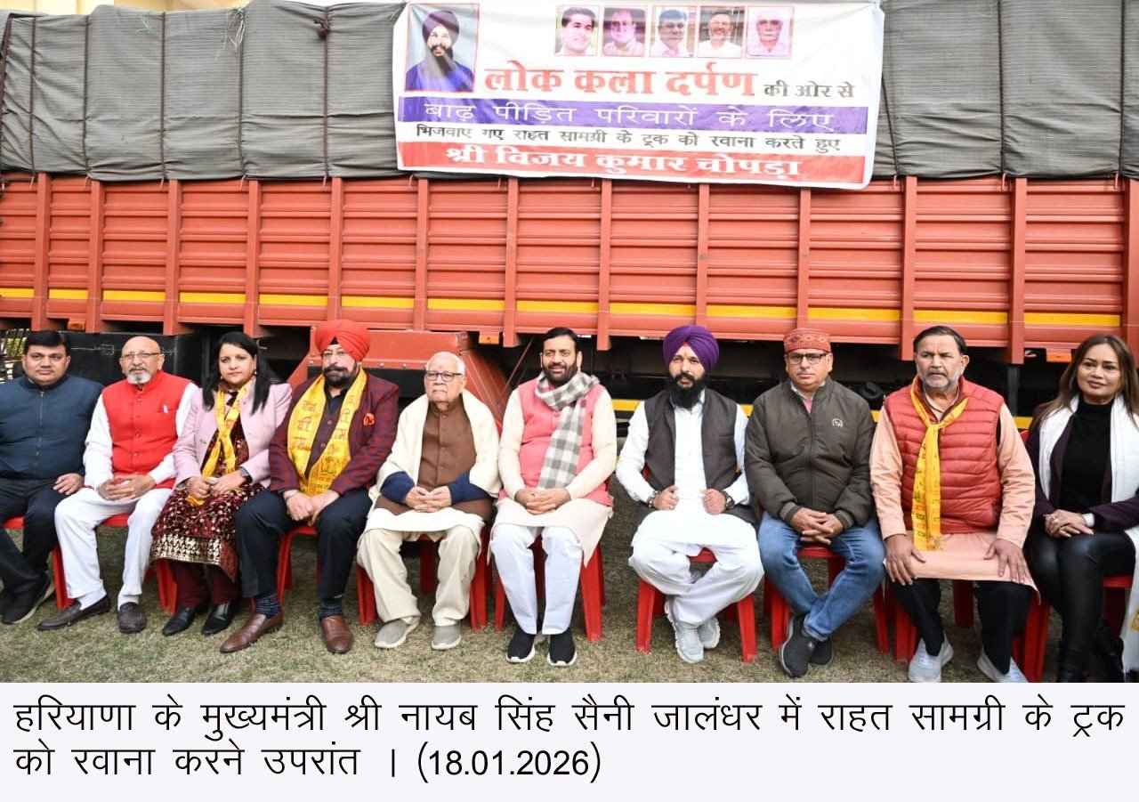 उन्होंने पंजाब केसरी समाचार पत्र समूह द्वारा समाजसेवा के क्षेत्र में किये जा रहे कार्यों की भी सराहना की और कहा कि इस समूह द्वारा पिछले 26 वर्षों से सीमावर्ती क्षेत्रों में राहत सामग्री भेजने का कार्य कर रहा है और अब तक 910 ट्रक राहत सामग्री भेजी जा चुकी है। आज भी इस कार्यक्रम के अवसर पर राहत सामग्री से भरे ट्रकों को रवाना किया गया है।