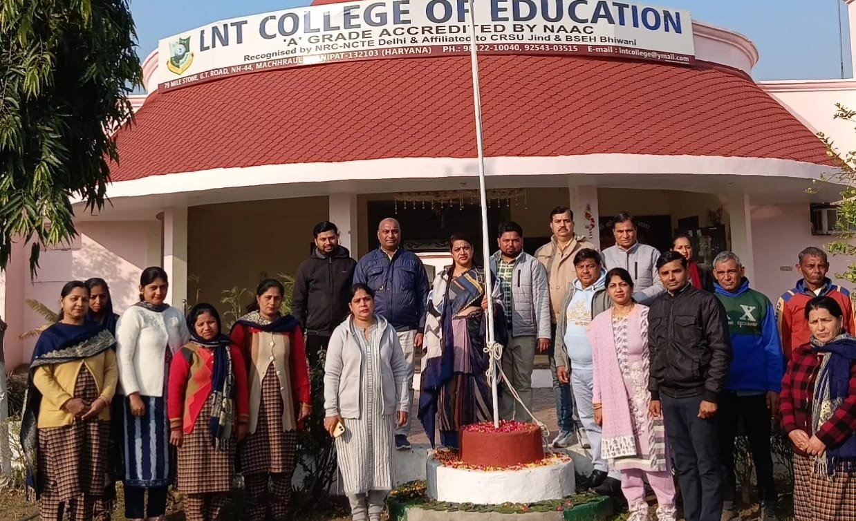 एलएनटी कॉलेज ऑफ़ एजूकेशन में 26 जनवरी को 77वां गणतंत्र दिवस बड़े हर्षो उल्लास,गरिमा एवं देशभक्ति के वातावरण में मनाया गया।कार्यक्रम का शुभारंभ प्रातः ध्वजारोहण के साथ हुआ,जिसे कॉलेज की अध्यक्षा मीनाक्षी गुप्ता द्वारा संपन्न कराया गया। ध्वजारोहण के पश्चात राष्ट्रगान गाया गया।जिसे संपूर्ण परिषर देशभक्ति की भावना से ओत-प्रोत हो गया।इस अवसर पर मीनाक्षी गुप्ता ने अपने संबोधन में भारतीय संविधान के महत्व,नागरिकों के अधिकारों एवं कर्तव्यों पर प्रकाश डाला।उन्होंने विद्यार्थियों से संविधान के मूल्यो,न्याय स्वतंत्रता,समानता और बंधुत्व को अपने जीवन में आत्मसात करने का आह्वान किया।प्राचार्य महोदय डॉक्टर लोकेश शर्मा ने भी विद्यार्थियों को संविधान के महत्व,देशभक्ति और राष्ट्र निर्माण में सक्रिय भूमिका निभाने के लिए प्रेरित किया।कार्यक्रम में विद्यार्थियों द्वारा देशभक्ति गीत,कविता पाठ एवं भाषण प्रस्तुत किए गए।सांस्कृतिक प्रस्तुतियो के माध्यम से भारत की एकता,अखंडता और समृद्ध सांस्कृतिक विरासत का सुंदर प्रदर्शन किया गया । अंत में सभी ने राष्ट्र की एकता, अखंडता और संविधान के प्रति निष्ठा बनाए रखने का संकल्प किया । यह कार्यक्रम न केवल विद्यार्थियों मे देश प्रेम की भावना को प्रबल करने वाला रहा, बल्कि उन्हें एक जिम्मेदार नागरिक बनने की दिशा में प्रेषित करने वाला भी सिद्ध हुआ। इस अवसर पर डॉक्टर राजेश भारद्वाज, डॉक्टर बलजीत,मनीषा वत्स, डॉक्टर दर्शन धीमान, सोनिया बंसल, डॉक्टर सुदेश, सत्यनारायण, प्रदीप, कमल व गोविंद जी मौजूद रहे।