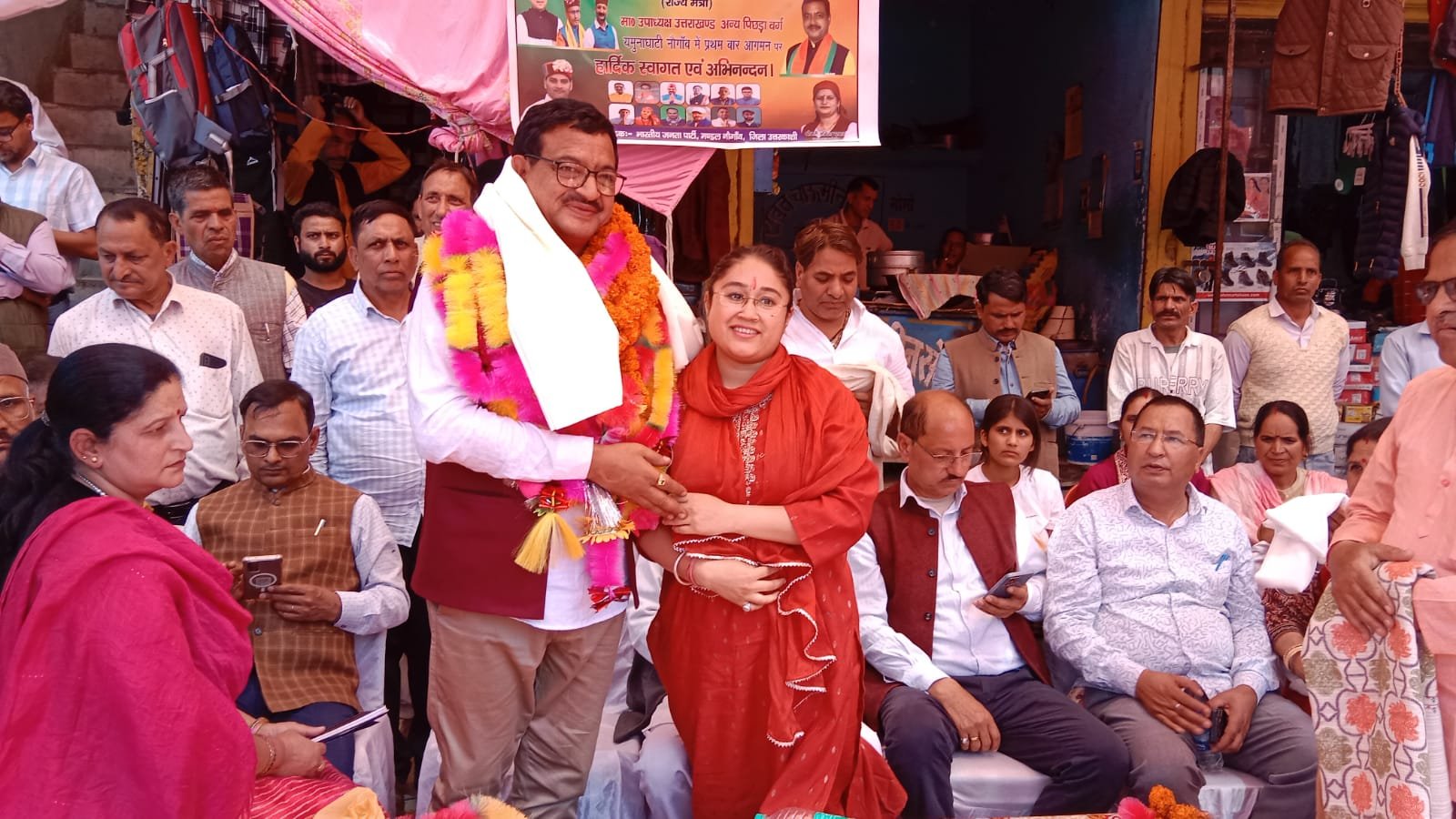 श्याम डोभाल का नौगांव चौराहे पर भाजपा कार्यकर्ताओं और स्थानीय लोगों ने जोरदार स्वागत किया और एक दूसरे को मिठाई बांटी।